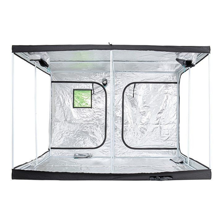 BloomBoxx Grow Tent Set up and grow with this outstanding new range of tents. The BloomBoxxs durable 22mm metal framework and metal corners provides the highest quality space for growers. See the results with stronger, healthier plants and increased yields. Robust 22mm frame The BloomBoxx boasts a 22mm steel structure, making it one of the thickest and most resilient designs available. At over 6mm wider in diameter than standard tents, its metal frame is highly durable and will withstand heavy loads or unexpected weather. Use the support bars to hang equipment - without bending or warping. Reinforced metal corners Even premium tents on the market today tend to use plastic corners, which are flimsy and reduce the quality of the entire tent. With nothing to hold it together, the whole frame could come down! The BloomBoxx uses only reinforced metal corners, keeping poles firmly in place at 90 angles: no snapping, leaning, or shattering. Come rain or shine The BloomBoxx was designed in the UK - so we know how unpredictable the great outdoors can be. Each tent has an opaque black 1650-denier exterior designed to completely block sunlight and withstand wear and tear. The exterior is double-stitched for extra durability, meaning leaks and holes are no issue. BloomBoxxs reflective silver Mylar interior conserves light within the tent and regulates its ambient temperature. Its thick fabric also provides substantial volume reduction for noisy equipment such as fans and carbon filters. Plant-safe viewing window The green translucent window on the side of the BloomBoxx allows growers to check up on their plants without opening the door. Plants cannot absorb green light, so they will not be affected by the window and their photoperiod will not be disturbed. It also reduces the need to enter the tent, preventing light and air from escaping the tent and conserving equipment costs wherever possible. The viewing hole can be covered if desired with a light-proof Velcro curtain on the tents exterior. How to use BloomBoxx Grow Tent? The BloomBoxx is easy to assemble and disassemble, and consists only of the metal poles, corners, and fabric covering. All poles use push and click fastenings for fast, safe construction. Each is labelled to indicate which poles fit together. To watch our team put together the BloomBoxx, take a look at our videohere. Why choose BloomBoxx Grow Tent? When it comes to stability, the BloomBoxx outperforms its market competitors. Metal corners keep the tent securely in place and weighted down - theyre a simple difference often overlooked by rival brands. The attention to detail is unparalleled: zips are covered with Velcro flaps to prevent even the smallest amount of light leakage. The tent comes with additional drawstring ports to hold multiple lengths of ducting in place, and an extra zip flange to keep cables safely out of the way. 3 x 2 x 2m; 22mm metal framework; Reinforced metal corners; 1650 denier black exterior; Reflective silver Mylar interior; Conserves light and reduces running costs; Resistant against wind and weather conditions; Green viewing window; Double-stitched for durability; Extra zip flange and portholes; Storage bag included. Product Specifications: Brand: BloomBoxx Dimensions: 3 x 2 x 2m Fabric Denier: 1650