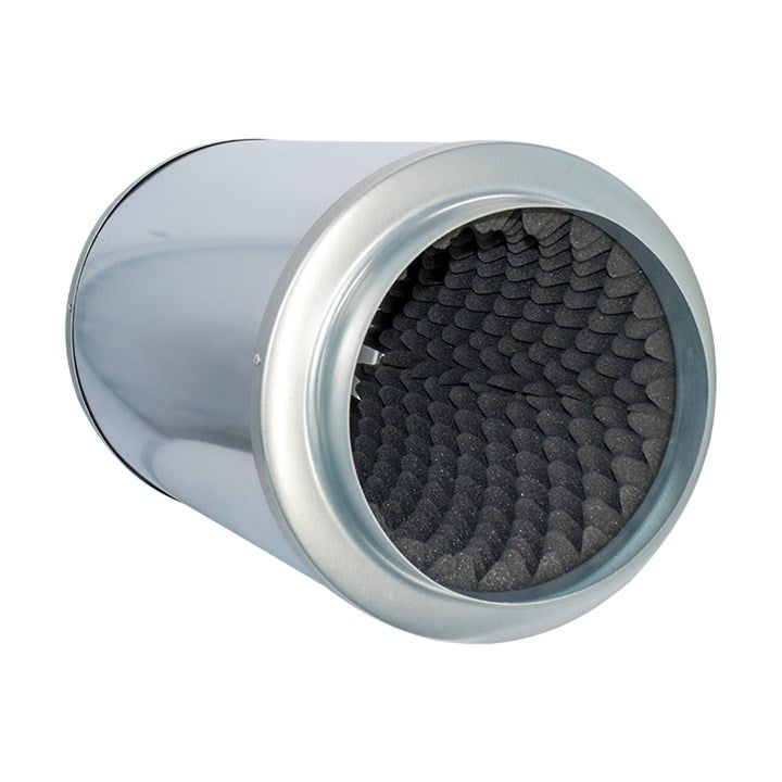 Carbon Garden Silencer Carbon Garden Silencers have been specially engineered as an acoustic soundproofing device specifically for the hydroponic industry, to help reduce the loudness of sound pressure created. KEY FEATURES Sound reducing acoustic foam reduces fan noise by up to 50%. Use with fans in conjunction with carbon filters, acoustic ducting or phonic trap. Durable and lightweight aluminium body. Compact design and easy to install. Attach silencer to the intake or exhaust side of an inline fan. Attach ducting on both sides for maximum noise reduction.