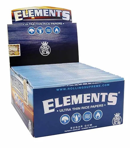 Elements Rolling Papers are made from natural earth friendly materials: rice and sugar. They are not produced by using harsh chemicals or burn agents. They burn with virtually zero ash except for the natural sugar gum turning into caramel as it burns. The earthly result? The best rolling paper known to man.