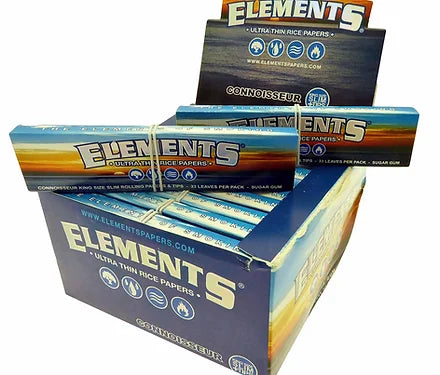Elements Rolling Papers are made from natural earth friendly materials: rice and sugar. They are not produced by using harsh chemicals or burn agents. They burn with virtually zero ash except for the natural sugar gum turning into caramel as it burns. The earthly result? The best rolling paper known to man.