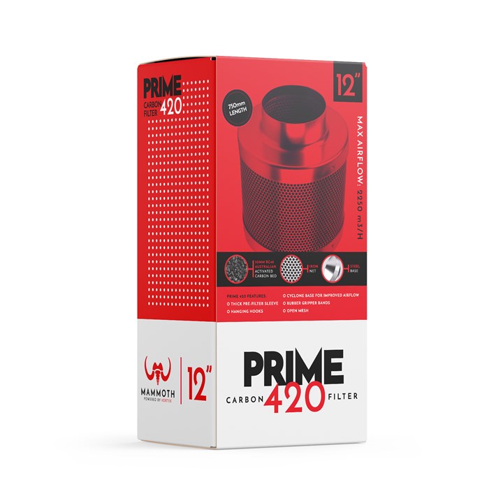 Traps odours Carbon contains pores designed to catch odours as they pass through. Rather than just masking bad smells, a carbon filter traps and neutralises them - meaning they're truly gone. VOCs (volatile organic compounds) might stem from smoking or paint fumes within the home, from some pesticides, or from plant odours in your grow room. The Mammoth Carbon Filter has an open mesh exterior and a cyclone base for improved airflow. It maximises the amount of air travelling in, so that as much pure air as possible can come out. RC 48 Carbon All Mammoth filters use RC 48 Carbon, the purest and highest quality Australian virgin activated carbon. When it comes to carbon, this type contains some of the largest pores, which means it can absorb the greatest quantities of waste. With an ash content of only 13%, it is also more efficient than many other forms of carbon. While the quality is impeccable, you'll keep long-term cost down. Lightweight Mammoth filters are, on average, half the weight of their competitors. This makes them easy to hang and assemble, and reduces strain on ceilings and grow tents. The filters can be transported easily if needed and make for a sleek, professional addition to any hydroponics setup. How to use Mammoth Carbon Filter? When ready to use, unwrap the product and cover with the pre-filter sleeve (included). Make sure the rest of your equipment is already installed and that a fan is attached to ducting for your desired method of extraction. Fix the carbon filter directly to the other end of the fan, or separate them with a short length of ducting. Hang as close to the top of your grow room as possible using hanging straps (not provided). Where to use Mammoth Carbon Filter? The filter can be used in any indoor grow room, workplace, or domestic setting that requires removal of VOCs and odours. Why choose Mammoth Carbon Filter? These produce premium results at approximately half the weight of a standard filter. The high-quality Australian carbon traps odours with ease thanks to its porous nature. Power is no problem for the aptly-named Mammoth, and filters range from 550 to 3250m/h to ensure the best and most efficient system for you. The bed of the filter is also considerably thicker than its competitors, so that bad smells have maximum time to be absorbed and removed. 50mm granulated RC 48 Activated Carbon Filter; Neutralises household and garden odours; High quality and cost effective; Refined aluminium casing; Lightweight; Minimal ash content; 2 year lifespan. Product Specifications: Brand: Mammoth Gross Weight: 19.57kg Net Weight: 19kg Size: 44.5 x 44.5 x 79 cm 750mm length Max airflow: 2250 m/h RC412 Carbon RC412 Carbon is the purest, highest quality Australian virgin activated carbon. Lightweight Averaging half the weight of other filters. Outstanding Performance Highly efficient and reliable, Vortex Filters are premium construction built with refined aluminium casing. Long-Lasting 2-year lifespan.