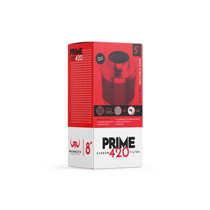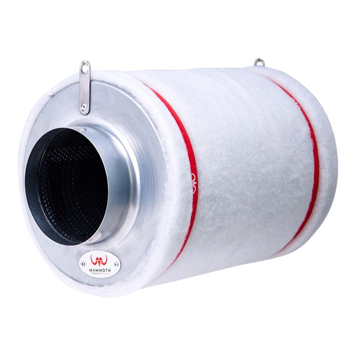 Mammoth RC 48 Carbon Filter Eliminate odours and VOCs with this sleek, light range of carbon filters from Mammoth. Mammoth are renowned for their quality and the 5" is no different: at just half the weight of most filters, it still packs a punch in a small grow room at 480m/h. Traps odours Carbon contains pores designed to catch odours as they pass through. Rather than just masking bad smells, a carbon filter traps and neutralises them - meaning they're truly gone. VOCs (volatile organic compounds) might stem from smoking or paint fumes within the home, from some pesticides, or from plant odours in your grow room. The Mammoth Carbon Filter has an open mesh exterior and a cyclone base for improved airflow. It maximises the amount of air travelling in, so that as much pure air as possible can come out. RC 48 Carbon All Mammoth filters use RC 48 Carbon, the purest and highest quality Australian virgin activated carbon. When it comes to carbon, this type contains some of the largest pores, which means it can absorb the greatest quantities of waste. With an ash content of only 13%, it is also more efficient than many other forms of carbon. While the quality is impeccable, youll keep long-term cost down. Lightweight Mammoth filters are, on average, half the weight of their competitors. This makes them easy to hang and assemble, and reduces strain on ceilings and grow tents. The filters can be transported easily if needed and make for a sleek, professional addition to any hydroponics setup. How to use Mammoth Carbon Filter? When ready to use, unwrap the product and cover with the pre-filter sleeve (included). Make sure the rest of your equipment is already installed and that a fan is attached to ducting for your desired method of extraction. Fix the carbon filter directly to the other end of the fan, or separate them with a short length of ducting. Hang as close to the top of your grow room as possible using the hanging straps provided. Where to use Mammoth Carbon Filter? The filter can be used in any indoor grow room, workplace, or domestic setting that requires removal of VOCs and odours. Why choose Mammoth Carbon Filter? These produce premium results at approximately half the weight of a standard filter. The high-quality Australian carbon traps odours with ease thanks to its porous nature. Power is no problem for the aptly-named Mammoth, and filters range from 550 to 3250m/h to ensure the best and most efficient system for you. The bed of the filter is also considerably thicker than its competitors, so that bad smells have maximum time to be absorbed and removed. 50mm granulated RC 48 Activated Carbon Filter; Neutralises household and garden odours; High quality and cost effective; Refined aluminium casing; Lightweight; Minimal ash content; 2 year lifespan. Product Specifications: Brand: Mammoth Gross Weight: 4.75kg Net Weight: 4.35kg Size: 25.5 x 25.5 x 38.5 cm 345mm length Max airflow: 480 m/h RC412 Carbon RC412 Carbon is the purest, highest quality Australian virgin activated carbon. Lightweight Averaging half the weight of other filters. Outstanding Performance Highly efficient and reliable, Vortex Filters are premium construction built with refined aluminium casing. Long-Lasting 2-year lifespan.
