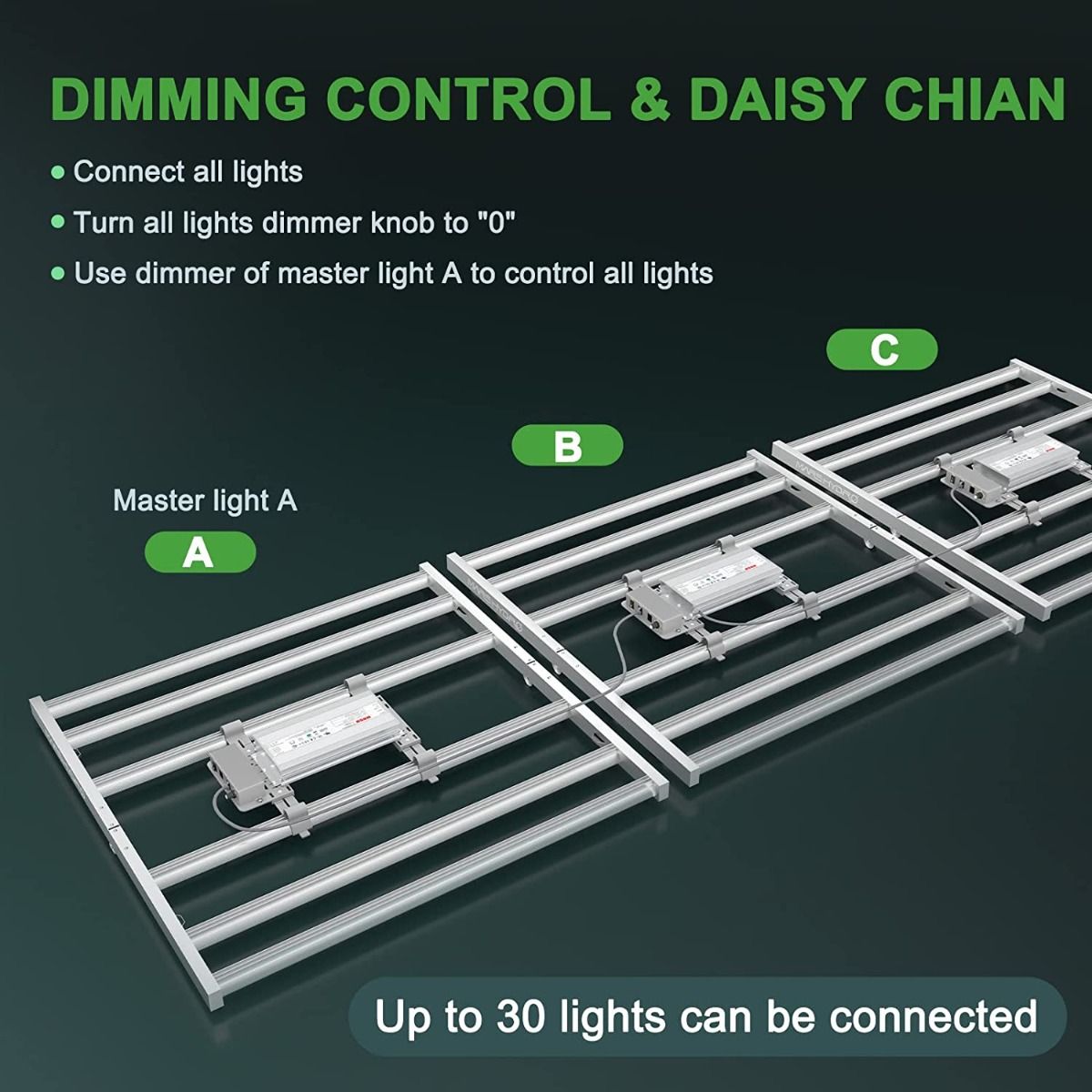 As a medium multi-strip LED grow light, FC4800 is suggested for small-scale cultivation or commercial veg grow. Installed with Samsung LM301B chips and broad spectra, FC4800 utilizes a uniform photon distribution to acquire an even PPID and optimal PPF across the plant canopy. Wattage - 480w Personal Cultivation Coverage - 4x4 ft Commercial Cultivation Coverage - 3x3 ft Commercial cultivators preferred light solution for single or multi-tier racking and various indoor plant grow scenarios. Superb Quality LED Chips: The whole light is composed of 1680 pcs Samsung lm301b chips. More than two times as many LEDs are used to drive the grow lights at low currents and to avoid overdrive. Quality is guaranteed and efficiency is up to 2.85 ?mol/j. Even PAR Distribution and High PPFD Output: The multi-light bar design and the densely distributed light chips enable the LED grow lights to achieve the optimum PPFD required for plant growth over the entire effective coverage area. Specifically Designed Spectrum: To ensure even plant growth, blue and red light are enhanced on the basis of a full spectrum combination. Not only does this accelerate plant growth, but it also improves the yield and quality of the plants at the same time. Dimming Daisy Chain Function: The dimming function saves on electricity costs and enables brightness from 10% to 100% for the different stages of plant growth. A single master light can connect up to 30 lights in a daisy-chain system. Business LED Grow Light: The light's wavy heat sink dissipates heat quickly. 180 collapsible feature for easier installation. All these features provide favorable assistance for commercial cultivation. DLC Certified & 5 Years Warranty: DLC-certified LED grow lights have the highest standard in the industry, both in terms of quality and efficiency. Locally serviceable and with a 5-years warranty to solve any quality issues.