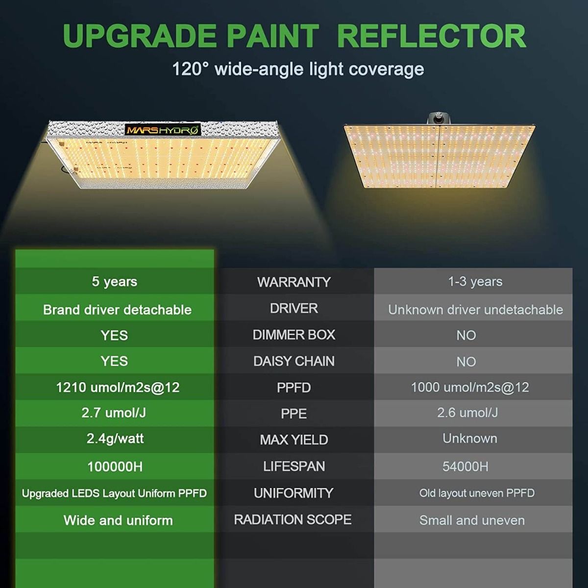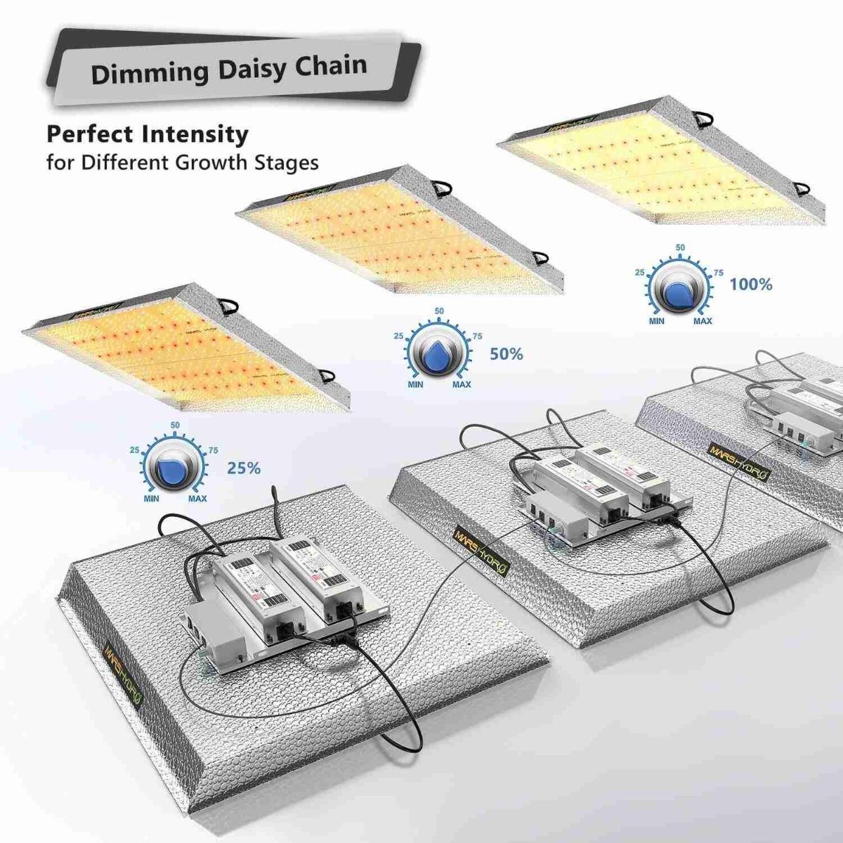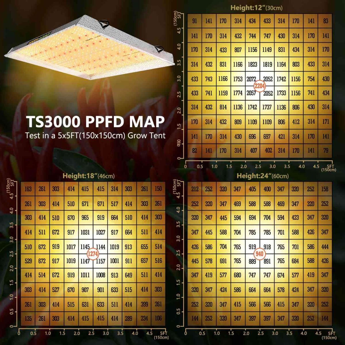TS3000, as the biggest led grow light in TS series, offers enough coverage for 4x4 ft area with affordable price and quality yields, in return it's able to be applied to both home cultivation and commercial veg cultivation. Wattage - 450w Veg Coverage - 5x5 ft Flower Coverage - 4x4 ft The overwhelming choice for most growers applying in grow tent, small room, cabinet & closet, and plant shelves, and budget option for commercial vegetative cultivation Low Energy Consumption LED Grow Light: Consuming 450w and also placed with 1016 pcs chips, TS3000 is able to replace a 600w HPS light while saving 25% electricity. High Performance LED Grow Light: With overall light output PPF 1151umol/S and leading PPE 2.7 umol/j, it's 50% even more photon efficient as well as can promise a 30% more yield comparing to the old HPS/MH lights. Patented Reflective Hood Design: The reflector style on TS3000 has been patented, which can successfully gather the light spread in all directions to enhance its light intensity and also aid plants absorb more light. Full Spectrum Advanced Spectra: By the special combination of spectra that emits most light in the 400-700nm waveband, extremely good for plant photosynthesis. Sufficient IR(730-740nm) is in the spectrum to induce bigger buds. Dimming And Daisy Chain Capability Available: Leveraging a separate dimmer on the removable driver, it supports 0-100% illumination modification and up to 15 LEDs daisy-chained in series, it supplies different light brightness for various plant stages and meanwhile reduces power waste. Trustworthy Certifications And Fast Warranty: CE, ETL, RoHS, UKCA security certifications authorized, 50,000 hrs durability, 5-year warranty, as well as local after-sales service facilities. Home-Use And Commercially-Viable LED Grow Light: TS3000 performs well in efficiency and light coverage that is suitable for both home cultivation and commercial projects, able to operate on 120VAC and 240VAC and 277VAC.