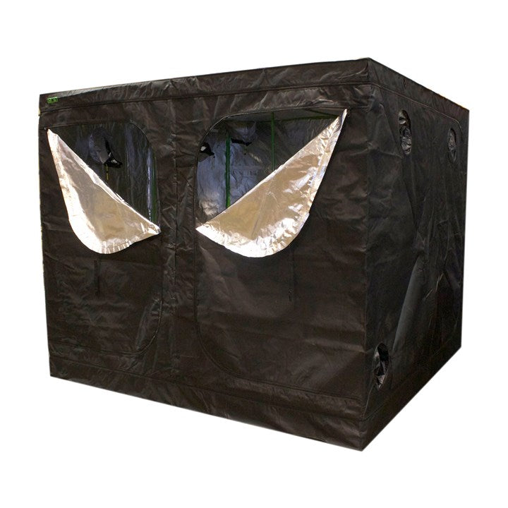 Monster Buds Pro 240cm x 240cm x 200cm Monster Buds Pro Grow Tents create the perfect environment to control variables such as water, nutrients, light intensity, pH, pests, contaminants and CO2. Simple to Assemble These simple-to-assemble Grow Tents come with easy to follow instructions for a quick and easy set up with no tools are required! 30% Increased Reflectivity The Monster Buds Pro Grow Tents offer a 30% increased reflectivity, meaning bigger yields. The tent is 100% PVC free, 95% ultra-reflective dimpled Silver-Mylar 600D x 600D, eliminates hot spots and ensures complete light coverage. Maximised Light Retention Maximise light retention with Monster Buds Pro Grow Tents, using the Old School Straight Door method, which prevents any light from escaping through unprotected zips. Mounted intakes and outtakes are located in prime location ensure air circulation and maximum uptake of CO2. High Quality Grow Tents The high-quality Grow Tents feature X-RIB technology. Exclusive reinforced polypropylene corner pieces which reduce vibration from fans and improve overall strength compared to conventional grow tents. Features steel corners and support bars which can carry up to 70kg. KEY FEATURES No tools required. Easy to assemble. Eliminates hot spots. 30% increased reflectivity. 100% PVC free. Steel corners and support bars. Ensures complete light coverage. Available in a variety of sizes.