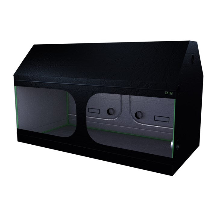 Monster Buds Roof Tents Monster Buds Roof Grow Tents create the perfect environment to control variables such as water, nutrients, light intensity, pH, pests, contaminants and CO2. Easy to Assemble These simple-to-assemble Grow Tents come with easy to follow instructions for a quick and easy set up with no tools are required! 30% Increased Reflectivity The Roof Grow Tents offer a 30% increased reflectivity, meaning bigger yields. The tent is 100% PVC free, 95% ultra-reflective dimpled Silver-Mylar 600D x 600D, eliminates hot spots and ensures complete light coverage. Maximised light retention Maximise light retention with Monster Buds Roof Tents using Old School Straight Door preventing light escaping through unprotected zips. Mounted intakes and outtakes are located in prime location ensure air circulation and maximum uptake of CO2. The high-quality Grow Tents feature X-RIB technology. Exclusive reinforced polypropylene corner pieces which reduce vibration from fans and improve overall strength compared to conventional grow tents. Features steel corners and support bars which can carry up to 70kg in weight improving the overall strength compared to conventional grow tents. KEY FEATURES No tools required. Easy to assemble. Eliminates hot spots. 30% increased reflectivity. 100% PVC free. Steel corners and support bars. Ensures complete light coverage. Available in a variety of sizes.