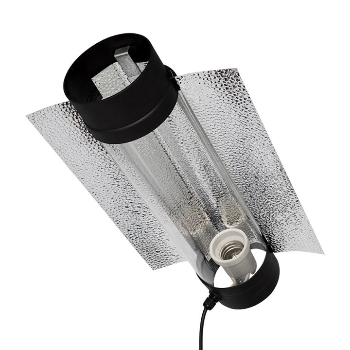 Advanced lighting technology for increased plant yield Included in the Omega 6" Air Cooled Digi Light Kit is an Omega 600W Digi-Pro, Digital Dimmable Ballast, an Omega 6" Air Cooled Reflector which gives an efficient and even distribution of light, as well as an Omega 600W Dual Spectrum Lamp. Omega 600W Dual Spectrum Lamp By combining the latest lighting technology with our own experience, Omega Lighting Dual Spectrum Lamps are specifically designed to suit each unique stage of a plants growth. Omega Lightings technically advanced lamps feature two ceramic tubes which are designed to optimise light output. This, in turn, achieves more usable light energy, providing longer-lasting performance with consistent lumen output. The dynamics of the tube allows for heat reduction without impacting upon the lifespan of the lamp. This results in a lower grow temperature that contributes to increased plant yield. Omega 600W (240V) Digi-Pro Digital Dimmable Ballast Omega Digi-Pro 600W Dimmable Digital Ballast is a high-quality ballast which is far more efficient than other ballasts on the market. The ballast is much more affordable than other ballasts giving excellent value for money with outstanding performance and reliability. Omega 600W Digi-Pro Digital Dimmable Ballast has the option of four different output levels can be switched 250W, 400W, 600W and super-lumen with a dimming selector illuminating a grow. Omega 6" Black Air Cooled Reflector This high-quality Black Air Cooled Reflector helps to improve indoor temperatures and enhance plant performance. This high-quality Reflector blasts away the hot air that surrounds the users lamp(s) out of their grow room. The Black Air Cooled Reflector comes with a 6 spigot connection size. Omegas Reflector also features two ports, one for the input air and one for the exit air. This affords the user further control over where the cooling air is drawn from. This is especially useful if the user is growing in a Co2 enriched environment. This Reflector by Omega Lighting is airtight, designed for powdered air-cooling, which is a valuable part of any growing equipment.