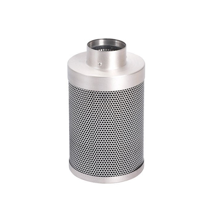 Rhino Pro Filters - 100 x 300 Rhino is the worlds leading air filter manufacturer: why settle for less? This top-tier model uses RC-412 Australian carbon to trap odour particles before they escape your grow room. The Rhino Pro features a vortex cone in its base to spin and evenly distribute air flow - getting rid of odours more efficiently than ever. Neutralises bad smells on contact Activated carbon has the special ability to trap and neutralise bad smells. Carbon filters work by moving dirty or odorous air through them. The carbon catches the particles containing impurities, and the air that leaves the carbon filter is clean and odourless. Removes VOCs VOCs are a group of chemicals that can be dangerous if inhaled, especially over a long period of time. Household products like air fresheners can contain VOCs, as well as cigarette smoke, petrol, and some paints. Plants can also emit VOCs - so its particularly important to keep your grow room well-ventilated. The Rhino Pro traps and neutralises VOCs, keeping your grow space fresher and safer. Uses premium RC-412 Australian carbon The more (and larger) pores a piece of carbon has, the more odour particles it can trap. The Rhino Hobby filter is made from RC-412 carbon - the purest and most porous on the market. Each pore in this kind of carbon is 0.02 microns in size. While this may sound tiny, its pretty impressive when it comes to odour neutralisation! Vortex base cone Rhino filters contain an innovative vortex cone in their base. This creates a tornado effect as air enters, spinning it evenly through the inside of the filter. Its a simple but genius device - it ensures that stale air is evenly circulated and all odours are removed. Perfect for pros This Pro model works with fans up to 350m/h, making it a high-quality choice for smaller grow rooms. How to use Rhino Pro Filters? You must choose the correct sized carbon filter for your fan for best results. If the filter cannot support your fans airflow, it will not remove odours as effectively. You should also make sure that your fan and filter are of the same diameter so that you can connect them together. Only remove the plastic wrapping when you are ready to use. Place the white fabric sleeve over the Rhino Pro before installing. This will help to keep dust out of the outer mesh and improve the filters longevity. Secure the filter between your ducting and the intake side of your extraction fan. Ideally, this equipment should sit at the highest and most central point in your grow room (i.e. the ceiling). Doing so will give you the most even odour removal; hot air rises, and so lower-placed carbon filters may not catch warm and stale air as easily. Hang your equipment using hanging ties, bungee cords, or jack chains. Remove and clean the dust filter when necessary. Where to use Rhino Pro Filters? The Rhino Pro is suitable for use with the rest of your ventilation system! Pair with a fan and ducting in your grow tent, grow room, shed, hydroponic system, or greenhouse to remove plant odours. You may also wish to remove VOCs elsewhere! This will work just as well in your home and office to prevent you from breathing in potentially harmful chemicals. Always remember to wear the relevant protective equipment as well as using a carbon filter if working with dangerous substances. Why choose Rhino Pro Filters? Removes grow room odours and VOCs; Lightweight aluminium casing; 50mm RC-412 carbon bed; 51% open area custom mesh for superior air flow; 2-year lifespan; Suitable for air volumes up to 350m/h. Product Specifications: Brand: Rhino Product Diameter: 100mm (4) Product Length: 300mm (12) Max Airflow: 350m/h Compatible Rhino Fan: 4 A1 / L1 Lifespan: 2 years