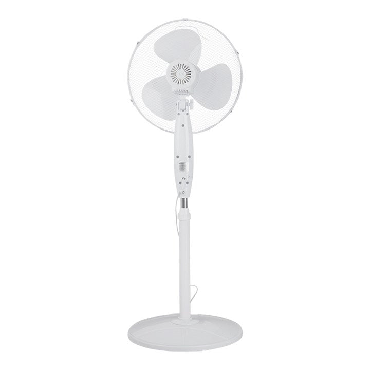 Vortex 16'' Oscillating Pedestal Fan With Circular Base The Vortex Pedestal, floor standing fan has an adjustable 400mm (16) head with a finger-safe mesh grill. It has three-speed settings and the height of the fan can easily be adjusted. KEY FEATURES 3 speed fan. Super quiet. Poly-coated safety grill. Full 90-degree oscillation. 30-degree vertical adjustment.