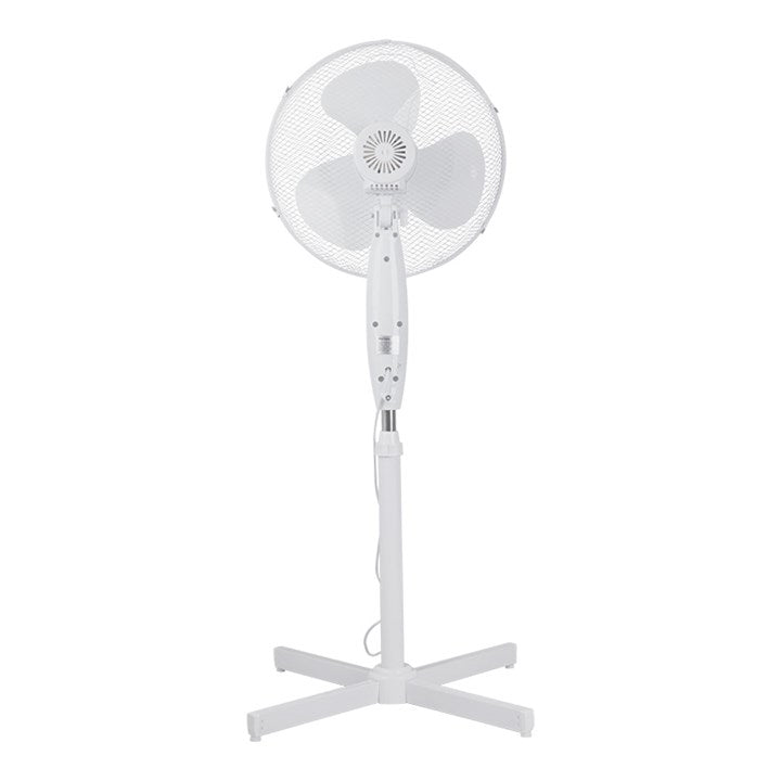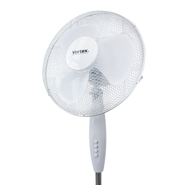 Vortex 16'' Oscillating Pedestal Fan With X-Base The Vortex Pedestal, floor standing fan has an adjustable 400mm (16) head with a finger-safe mesh grill. It has three-speed settings and the height of the fan can easily be adjusted. KEY FEATURES 3 speed fan. Super quiet. Poly-coated safety grill. Full 90-degree oscillation. 30-degree vertical adjustment.