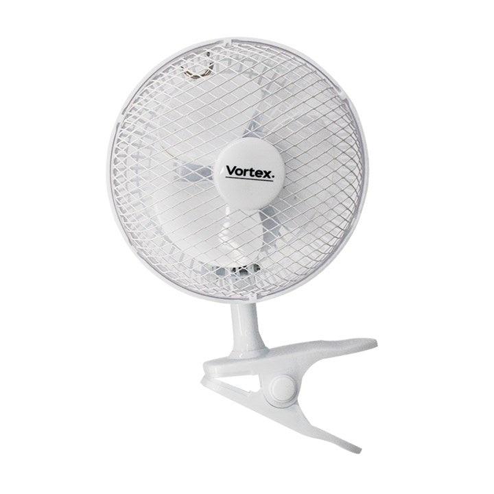 Vortex 6" Clip On Fan Vortex high-performance wall fans are one of the quietest in the industry. This amazing product is cost-effective, and also has fantastic results. KEY FEATURES Speed switch to allow more control over your plants' environment. Robust UV resistant casing with higher resistance to humidity. RoHs approved and CE marked for quality assurance and peace of mind. Moulded UK plug. 2 Speed Settings. Quiet Operation. Sturdy Clip.