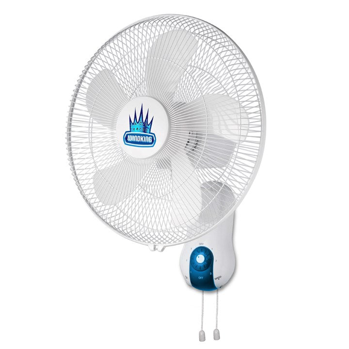 WindKing 16 Oscillating Wall Fan The WindKing smoothly oscillates to clear hot, stale, and damp air. Keep your grow space cool and consistent with this 16 wall fan. Mimics outdoor movement Fluctuations in temperature can be harmful to your plants. Equally, stale air and excess humidity can lead to some spots becoming warmer or more CO?-heavy than others. These microclimates make it difficult to gauge the true conditions of your growing space and are a breeding ground for pests and mildew. Give plants a fresh, clean supply of air throughout the day and keep them at an optimum temperature no matter the weather outside. A consistent, gentle flow replicates the natural movement of plants outside in the wind, helping them to become more resilient over time. O-shaped oscillation Unlike most standard oscillating fans, the WindKing moves in an innovative O shape. This is gentler on the inner mechanism than simply moving side to side and prevents the wear and tear associated with repetitive movement. Gives room to grow The fan can easily be mounted on a wall. Not only does this prevent trip hazards from excess wires, but it also frees up further space for plants. Wall-mounted fans are a fantastic space saver and provide value for money in small-scale grow rooms. The WindKing comes with a mains plug and 1.5m cable, offering plenty of length if electrical sockets are limited. How to use WindKing Wall Fan? The WindKing just needs to be plugged in at a mains source with the cable included. Press the power button to turn on, and choose from the 3 speed settings using the blue dial on the unit. Where to use WindKing Wall Fan? Any indoor plants will benefit from the fresh air! This fan may be used in any indoor grow space where it can be mounted to a wall - this might include grow rooms, greenhouses, grow tents (with adequate wall support), and within the home. Larger grow rooms may require multiple fans to keep the entire space cool and eliminate all spots of humidity. Why choose WindKing Wall Fan? 16-inch oscillating wall fan; Cools grow spaces and supplies fresh air; O-shaped oscillation for longer fan life; Manages heat, humidity, temperature inconsistency, and CO? distribution; Easy to mount; Adjustable head tilt; 3 speeds; 5 blades for greater airflow; 55W thermally-protected motor. Product Specifications: Brand: WindKing Diameter: 16 (40.6 cm) Speeds: 3 Blades: 5 Plug & Cable Length: 150cm Motor: 55W Voltage: 230V